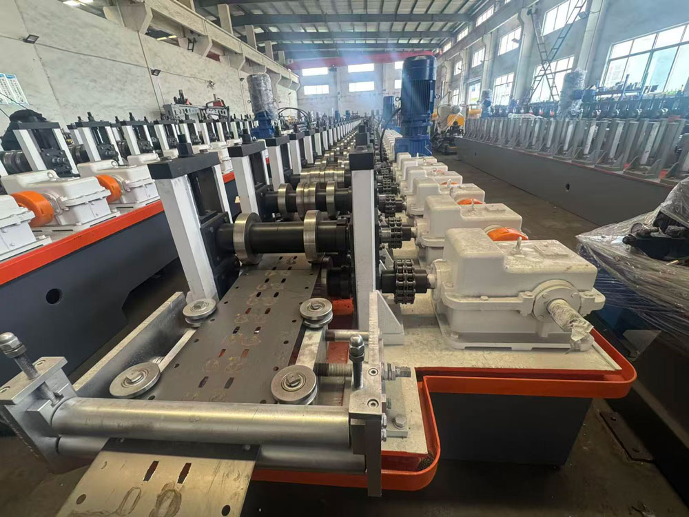 One more set of rack upright roll forming machine (90×70 / 100×70) is now ready for production for our China local return-order customer. This rack upright roll forming machine is specially designed to produce warehouse rack uprights with a maximum thickness of 2.5mm, meeting the high-strength requirements of modern warehouse storage systems.